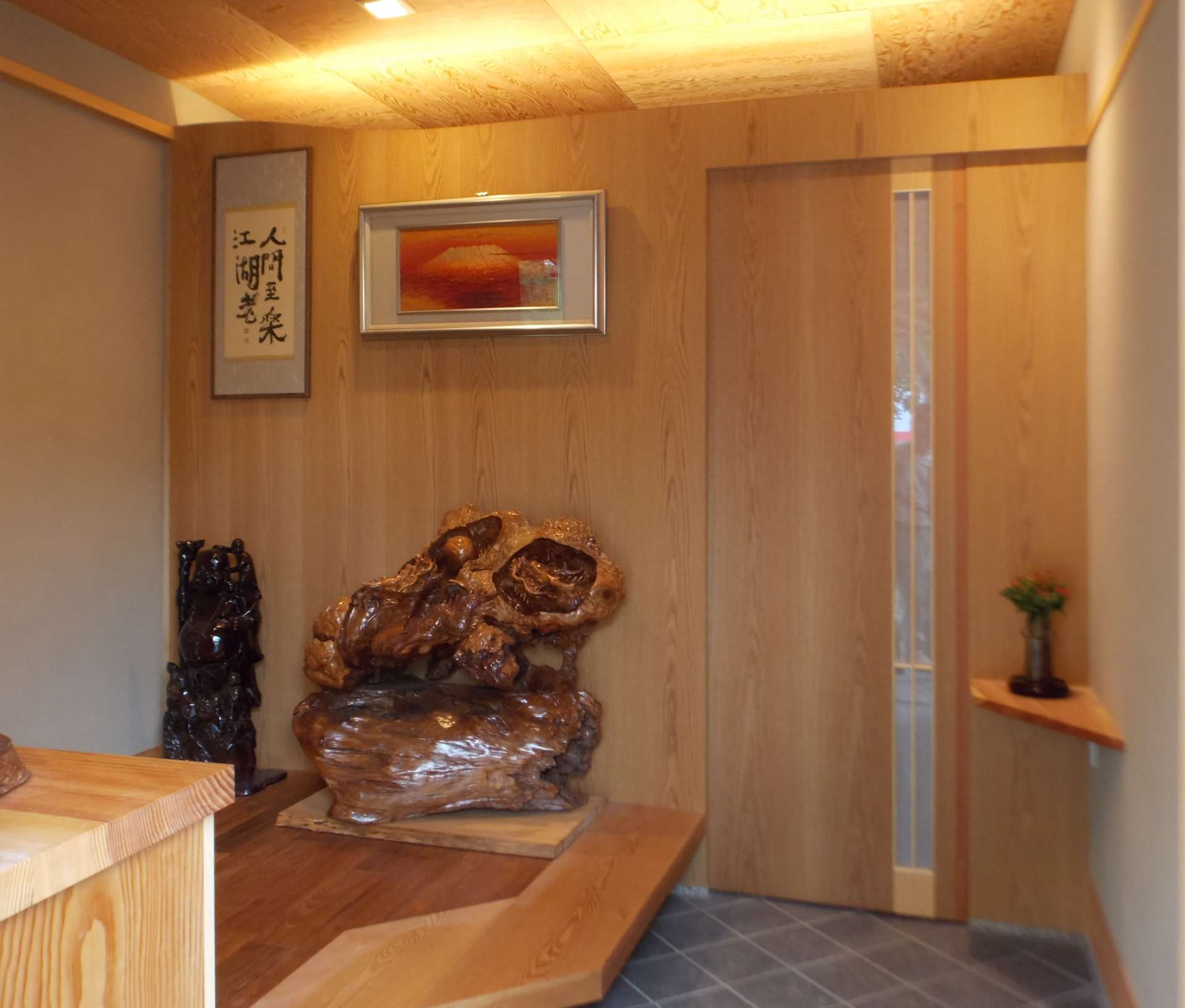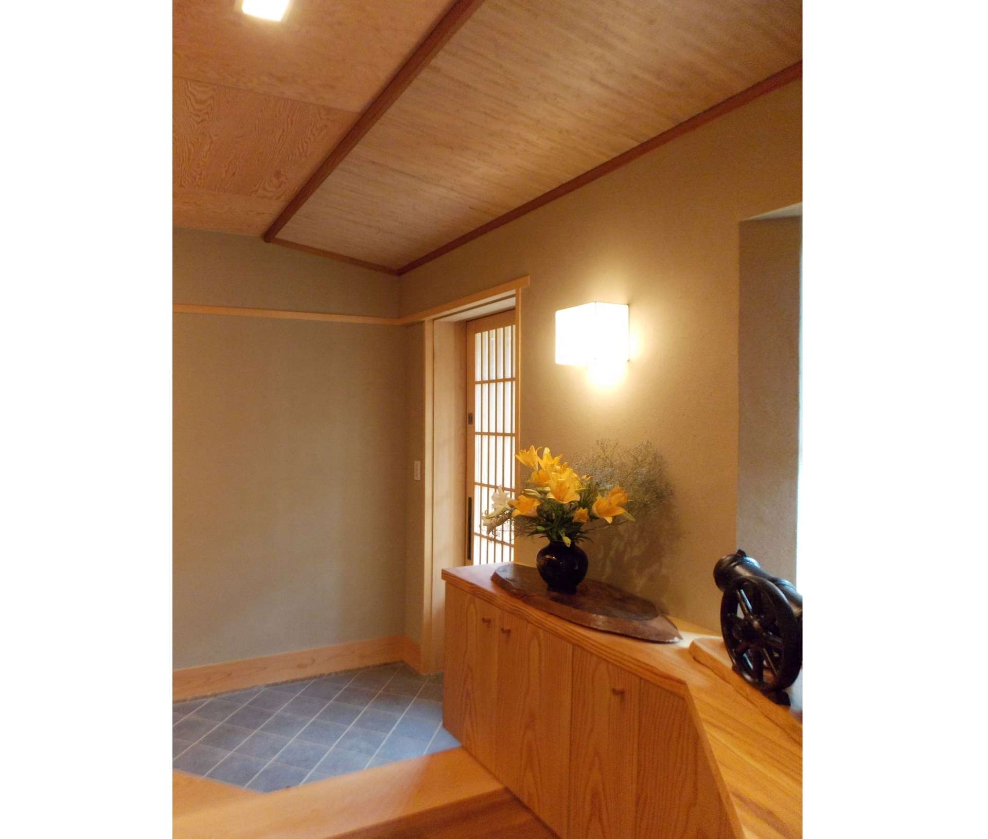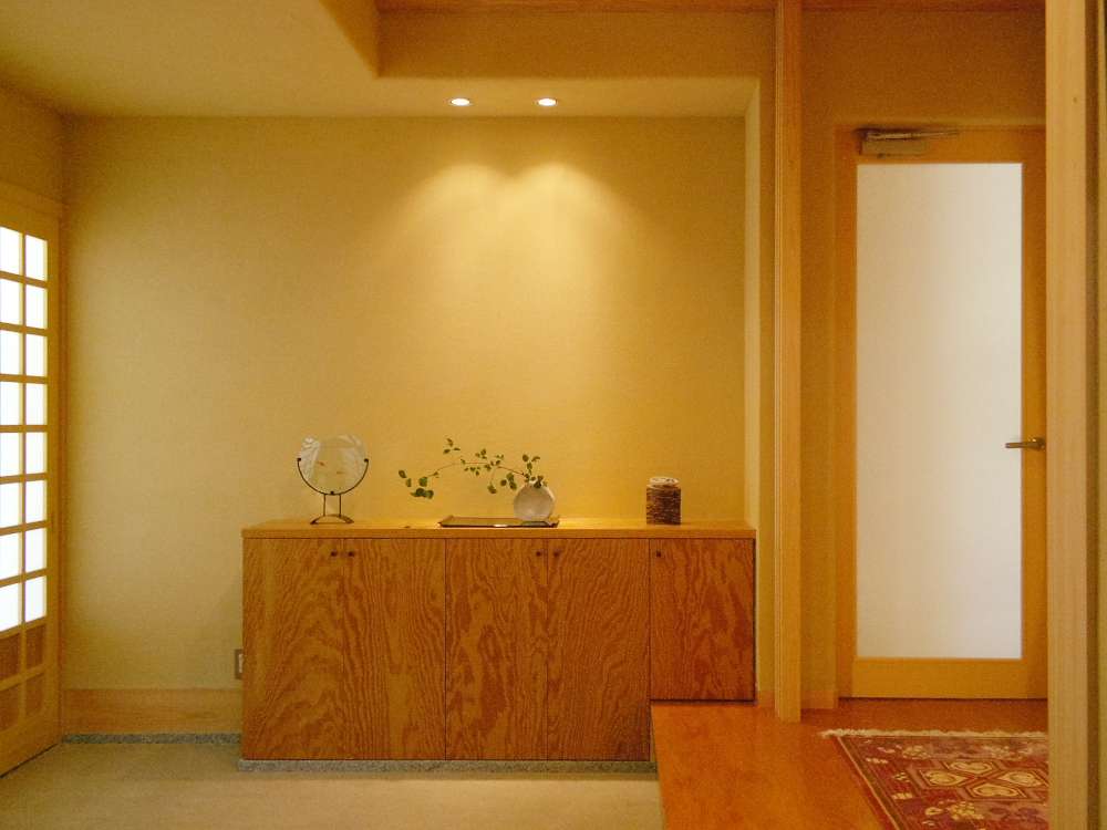 言うまでもありませんが、玄関は家の主要な出入り口に設けられる空間です。お客様を迎える時、そこは住む人の第一印象となる場です。ささやかでももてなしの空間として工夫をし、心地よい「しつらい」をしたいものです。また履物などが散乱しないよう十分な収納スペースを確保したいですね。